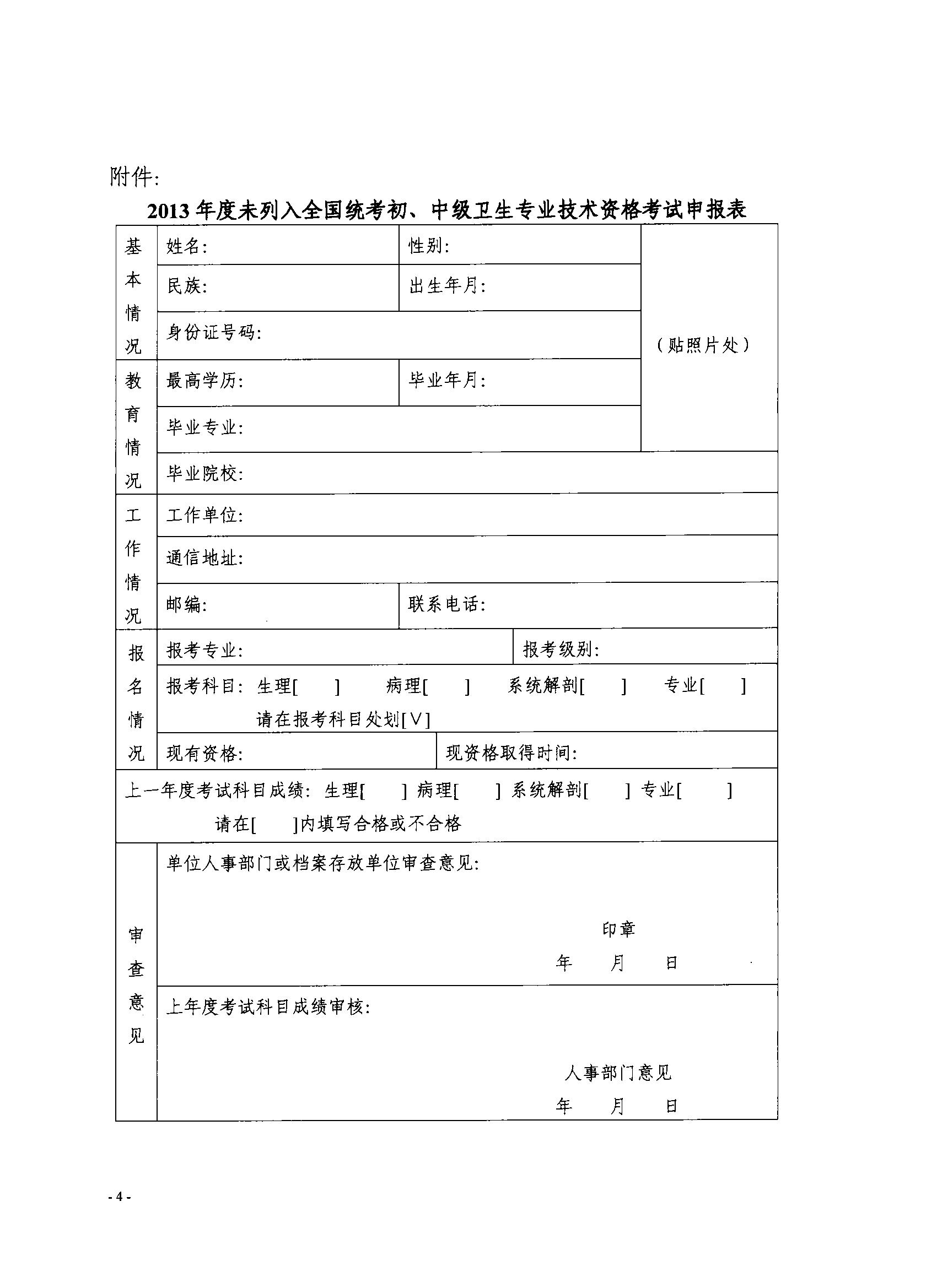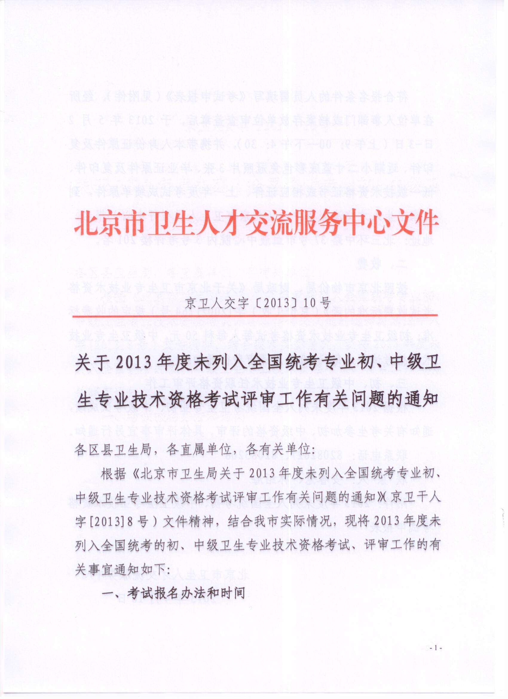 北京市卫生局关于2013年度未列入全国统考专业初、中级卫生专业技术资格考试评审工作有关问题的通知 下载