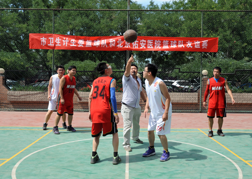 6月27日,北京佑安工会篮球队与市卫生计生委篮球队友谊赛在佑安篮球场进行了一场激烈的角逐,北京佑安医院工会张晓静主任,纪检办公室仇淑华主任来到比赛现场督战。