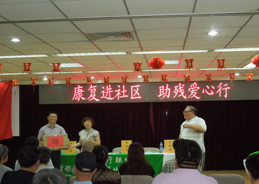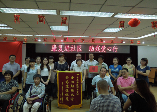 这次党日活动得到了东城区残联的大力支持,参加活动有残联体协秘书长李忠岳同志、残联体协副会长解占元同志以及残联康复科的工作人员,现场来了许多残疾人及社区居民。首先由残联副主席致欢迎辞并赠送了锦旗。支部书记李俊红代表支部党员向残疾人赠送了爱心礼品,她说:作为一个健全人,在工作中、生活中我们都觉得有很大压力,那作为残疾人要承受比正常人更大的压力,我们走进社区到残疾人身边来就是践行党的群众路线,为残疾人提供帮助、奉献爱心,让他们感受到全社会这个大家庭的温暖。