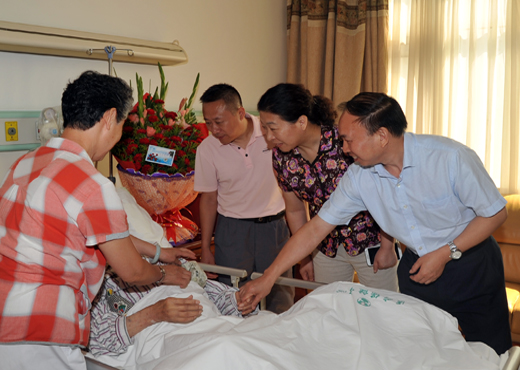 为了贯彻北京市医院管理局《关于在医管局系统离退休干部中广泛开展纪念中国人民抗日战争胜利69周年和庆祝新中国成立65周年活动》的通知精神,8月27日上午,北京佑安医院离退办、离休党支部一行在党委书记李玉梅、副书记向海平的带领下,来到北京友谊医院,亲切慰问了因病住院治疗的离休抗日老干部李振民同志,并在病床前陪伴李老度过了90周岁诞辰。