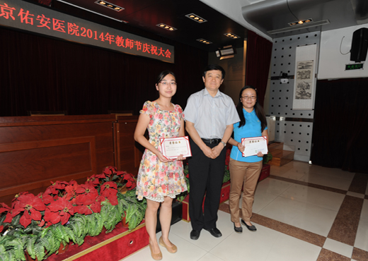 9月9日,佑安医院隆重召开2014年教师节庆祝大会。李宁院长、李玉梅书记、段钟平副院长、金荣华副院长、向海平副书记、孙桂珍副院长、刘香玉主席出席了大会,医院教学督导专家及全院教师100余人参加了大会。大会由教育处孙国平处长主持。