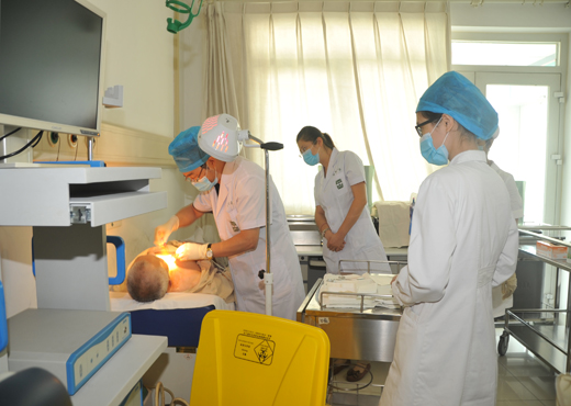 上午,我跟随鲍主任和他的医疗团队出专家门诊。当天来看病的患者大多数都是老病人,一部分是手术后复诊的,或者定期来这里治疗的,还有的是鲍主任在其他医院治疗过的病人,又追随鲍主任到了佑安医院。透过患者言语传达出的信任与感激,使我深刻的感受到这个团队在鲍主任的带领下不但充满活力,而且技艺超群,更重要的是他们的诊疗活动始终从患者利益出发,与患者充分交流病情的基础上,让患者可以根据自身情况选择适合的治疗方法,避免了后续与诊疗相关的很多矛盾隐患,深得患者的信任。在上午的诊疗活动中,多次使用到国际最先进的诊疗设备,如纤维喉镜、频闪喉镜,鼻内窥镜等,并且为国内唯一独立配备专业消毒设施的耳鼻咽喉科,引进了国际先进的消毒池,低温等离子及超声消毒仪。同时,佑安医院作为传染病医院,经常会接诊传染病病患,在这里,传染性疾病患者与非传染性疾病患者严格分区诊疗,使患者得到更加安全的就医环境。