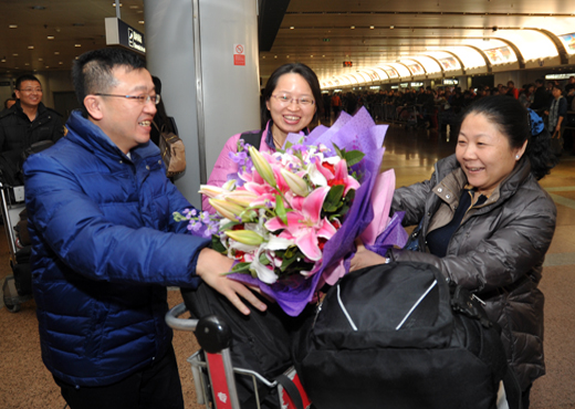 2015年1月16日晚,北京佑安医院援疆干部林伟副主任医师圆满完成为期一年的援疆任务凯旋归来,佑安医院领导和同事到机场迎接他的到来。