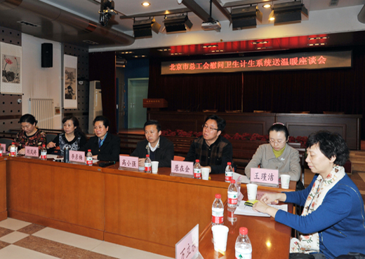 2月11日,北京市总工会副主席高小强、北京市政法卫生文化工会主席原在会等领导来到北京佑安医院亲切慰问卫生计生系统的劳模、困难职工、援非和因公感染非典的医务人员代表。座谈会由北京市卫生计生委副主任、工会主席李彦梅主持,北京佑安医院党委书记李玉梅、工会主席刘香玉陪同慰问。