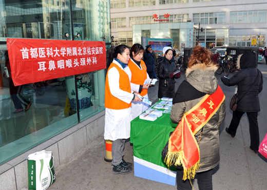2015年3月3日,是第十六个全国“爱耳日”,也是国际爱耳日,北京佑安医院团委积极参加耳鼻咽喉头颈外科“爱耳日”义诊咨询活动。此次活动共有7名青年志愿者参加,在团委书记张鸣旭的带领下,他们冒着寒风分别在院区和门诊为百姓提供咨询和发放宣传册等服务。本次志愿服务活动截止到发稿时,共为208人提供咨询,发放宣传册600余份。