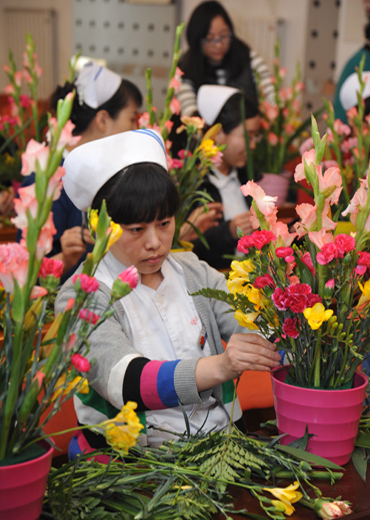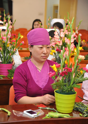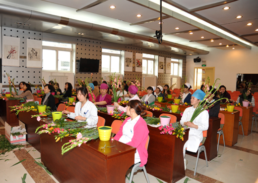 在“三八”国际劳动妇女节到来之际,北京佑安医院工会在医院报告厅组织了一场别开生面的插花艺术培训,特邀中国插花花艺协会常务理事、中国插花花艺大师谢晓荣讲授花艺基本知识并做现场演示辅导,工会主席刘香玉出席活动并代表院领导向广大女职工致以节日的问候。