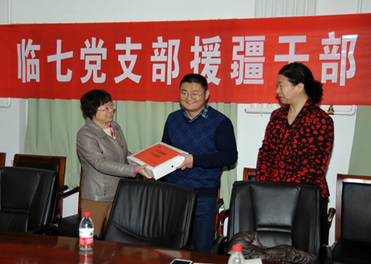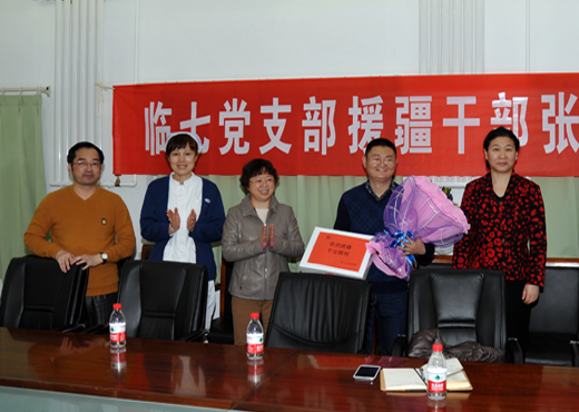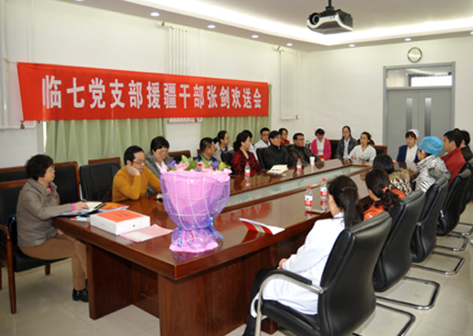 张剑是急诊科的责任主治医师,也是临七支部的一名入党积极分子,当听到有援疆医疗任务时,不顾孩子幼小等困难,毫不犹豫地报名参加了这项光荣任务。欢送会上,支部书记李俊红,支委马洪波都曾经参加过援疆任务,她们就自己在新疆工作和生活经历,对当地的地理环境、风土人情,民族团结,如何开展医疗工作及保护自身安全等做了详细介绍。门诊部赵主任,耳鼻喉科鲍主任,眼科郭主任分别解读了这次援疆医疗任务的意义,并对张剑积极参加援疆任务的行为予以充分的肯定。门诊部杨护士长也表态:张剑的爱人张勇勇是门诊的一名护士,门诊部一定会尽最大努力关心、照顾好他的家庭,解除后顾之忧,请张剑放心赴疆。…,真是叮嘱的话语说不完。支部还将党员精心准备的礼物和鲜花送给张剑,体现了临七支部这个大家庭的温暖。