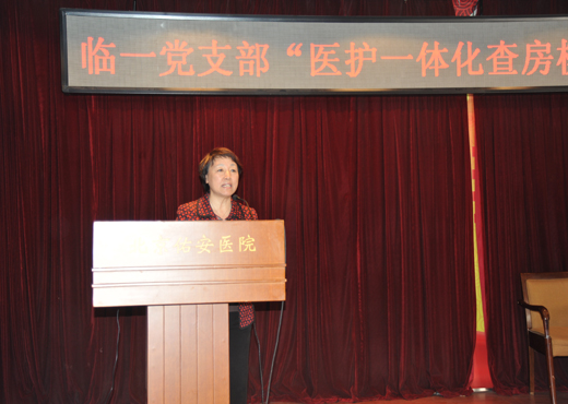 为了将党建工作与医院中心工作更好地结合,配合JCI评审,不断提高患者满意度,院党委于3月24日举办临床第一党支部 “医护一体化查房”主题党日观摩活动。院领导李玉梅、向海平、金荣华、孙桂珍、刘香玉,临床党支部所辖科室科主任、责任主治医、护士长、副护士长及党员代表,医技后勤党支部委员和统战人士代表参加了观摩活动。