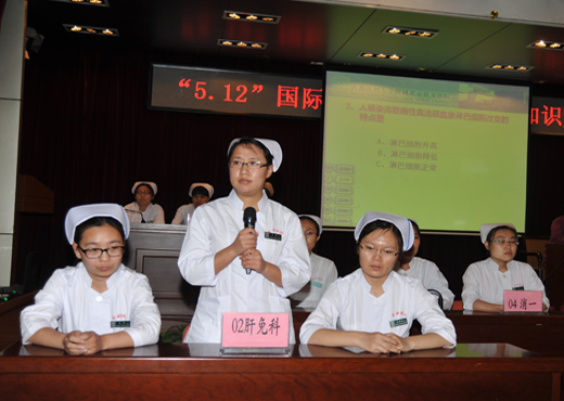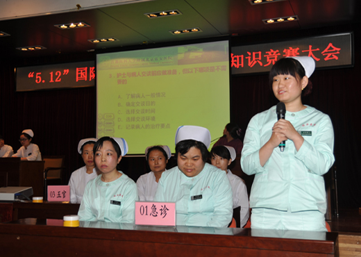 5月11日下午,全院护理人员聚集在报告厅,大家用高唱“佑安之歌”来庆祝自己的节日。李玉梅书记、向海平副书记、金荣华副院长、孙桂珍副院长莅临大会,李书记代表医院为全院护士致辞,鼓励全院护理人员积极工作,乐观生活,用JCI标准指导护理行为,做有知识、有活力的佑安护士。孙桂珍副院长代表医院领导宣读了表彰决定。表彰过去一年来在临床一线辛苦工作的优秀护理集体与个人。重症肝病科吴冬霞代表36名优秀护士抒发了荣获表扬的心情;她激动地向大家表示感谢,感谢医院的培养与认可;手麻科护士长李学宁也代表优秀护理集体上台发表了感言,表达出手麻科护理工作成绩离不开全院职工的大力支持,众人拾柴火焰高。在护理知识竞赛活动中,有6个科室参加了决赛,她们按照护士、护师、主管护师进行组合,竞赛知识内容涵盖了传染病知识、基础护理及JCI相关内容;她们在必答题、单选题、多选题、简答题等等环节的严格考核下,急诊科彰显出扎实的基本知识,在18名选手中出类拔萃独占鳌头赢得第一名的好成绩,获得一等奖;肝病免疫科、感染二科并列二等奖;外科ICU、五官科、消化一科获得三等奖。大家在紧张的气氛中不仅又一次温习了护理知识,也充分体现了团队协助精神;护士兄弟姐妹们脸上都洋溢着兴奋、幸福的微笑。