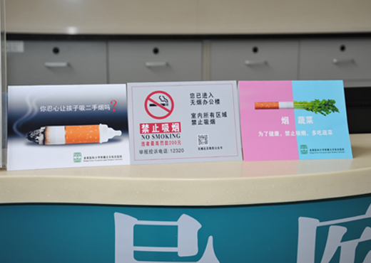 今年紧紧围绕无烟日主题,在佑安医院门诊大厅利用电子显示屏向患者和职工进行控烟宣传(北京控烟条例、为了您和他人的健康,医院严禁吸烟、也许,你的指尖夹着他人的生命——请勿吸烟等内容),摆放控烟宣传的展板3块;制作3种控烟宣传桌签在院内向门诊导医台、收费窗口、病房护士站等发放近100份,在建筑物内外明显位置粘贴禁止吸烟的标识,积极劝阻在禁烟区域内的吸烟行为,宣传吸烟的危害;为来往病人介绍北京控烟条例实施内容,警示全院职工、病人及家属远离烟草,远离危害;为配合我院JCI评审标准要求及今年6月1日《北京市控烟条例》的贯彻落实增加并调整我院吸烟区的设置,目前为止我院共设置8处室外吸烟区。