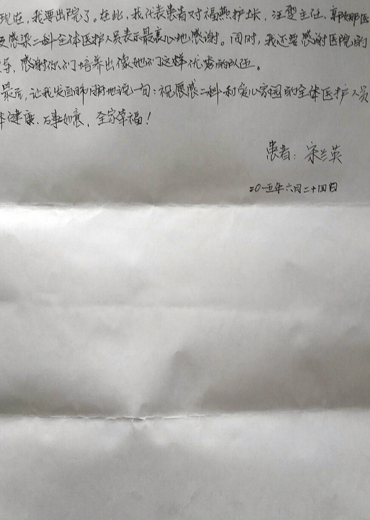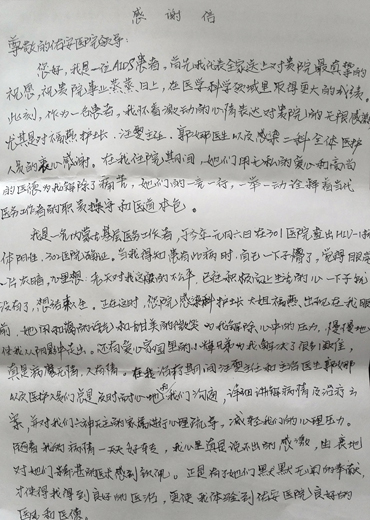 北京佑安医院纪检办公室收到来自感染中心患者的表扬信