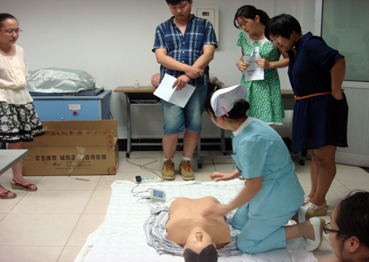 北京佑安医院工会和教育处制定了2015年全员心肺复苏技术培训计划,于8月15日至9月30日完成全员培训与考核,10月份举办竞赛和展示活动。近日,心肺复苏技术师资培训班开班,各科室推荐的50名骨干医护人员参加培训。培训开始前,段钟平副院长向承担师资培训任务的包志英等9位老师颁发了“佑安医院心肺复苏技术培训指导老师”的聘书。首先,由受聘指导老师急诊科李俊红主任进行了心肺复苏理论讲座。李主任的讲座重点突出、图文并茂、形象生动,学员们聚精会神、认真聆听。随后,在院级指导老师的带领下,学员们分成六组进行基础心肺复苏技术(BLS)操作培训。大家利用模型,反复操作练习,最终掌握了心肺复苏技术,并逐一通过考核,获得了科室心肺复苏技术指导老师的聘书。科室师资将在科主任的带领下,负责落实科室全员心肺复苏技术培训与考核工作。