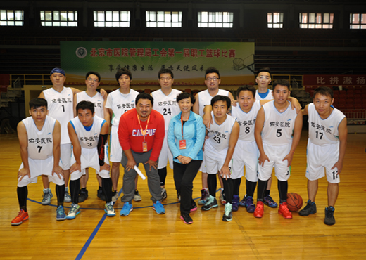 北京市医管局第一届职工篮球联赛于10月17日在大学生体育馆正式开幕,北京佑安医院工会篮球队参赛,工会主席刘香玉出席开幕式。