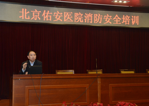 近日,首都医科大学附属北京佑安医院召开专题院周会,对班组长以上干部及彩钢板房使用科室相关人员共231人进行了消防安全培训。培训中,特别邀请了丰台区公安消防支队防火监督处钟诚警官进行了专题授课并观看了消防警示教育片,党委向海平副书记结合年前社会治安形势、医院实际情况及安全使用彩钢板房提出了具体要求,为做好年底前医院安全工作奠定了基础。此次培训,得到了医院工会的大力支持,提高了职工的消防安全意识,达到了预期的效果。