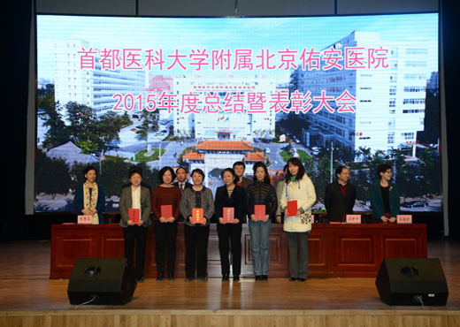 1月27日,北京佑安医院2015年度总结表彰大会在庄严的国歌声中隆重召开,大会对在医院建设和发展各个领域表现突出的先进集体、先进个人、优秀中层干部、突出贡献个人、优秀护士长进行了表彰,同时还表彰了“最佳主题党日活动”党支部和年度科研成果获奖人员。