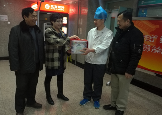 院领导每到一个科室都将慰问品送到医护人员的手中,并祝福他们新春快乐,感谢他们舍小家顾大家服务患者,对他们的奉献精神致敬,并叮嘱值班人员要坚守岗位,做好交接班工作,为患者提供高效优质的医疗服务。