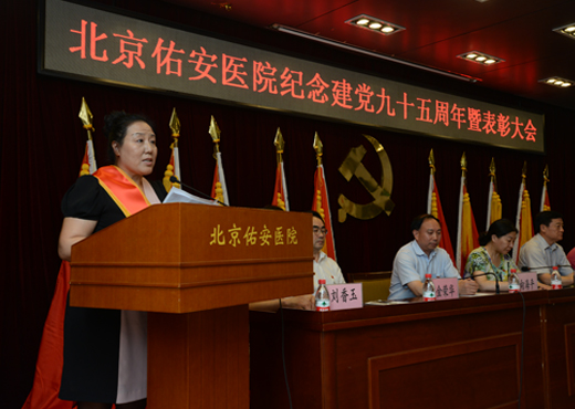 七一前夕,北京佑安医院党委隆重召开纪念建党九十五周年表彰大会。北京佑安医院院领导、全体党代表、全院中层干部、各支部党小组长以上党务工作者和新党员参加大会,大会由向海平副书记主持。