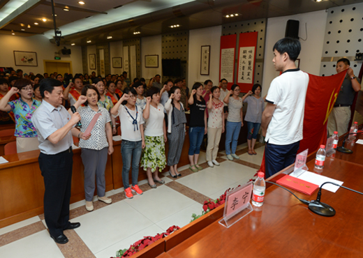 与会同时,新党员和全体与会党员在李宁院长的领誓下面向党旗庄严宣誓,通过重温入党誓词的形式再一次表明了对党忠诚,做合格党员的决心。