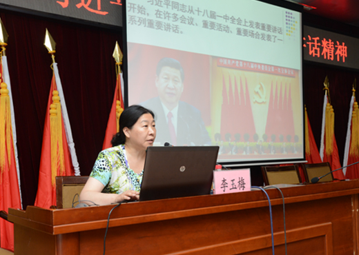 表彰大会后,李玉梅书记以《学习习近平总书记系列重要讲话精神的体会》为题作了专题党课。李书记总结个人的学习体会,以“一个目标(坚持和发展中国特色社会主义,坚定道路自信,理论自信,制度自信。)、一个主题(实现伟大复兴的中国梦)、四个战略布局(全面建成小康社会、全面深化改革、全面依法治国、全面从严治党)、五大发展理念(创新、协调、绿色、开放、共享)和八大观(中国特色社会主义观、民族复兴观、全面改革观、发展观、民主政治和法治观、意识形态观、外交和国际战略观、党建观)为脉络细致清晰地分析解读了习近平总书记系列重要讲话精神,为全院党员在“两学一做”学习教育活动中更好地学习领会习近平总书记系列重要讲话精神内涵提供了指导。