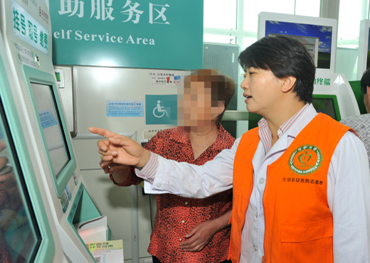 每天清晨8点30分,北京佑安医院临四党支部都会有2人身穿黄马甲利用休息时间到医院门诊大厅做导医志愿服务,帮助患者使用和熟悉自助挂号平台,为医院实行非急诊全面预约和改善门诊就诊秩序做出了积极的努力,这一活动一直持续了一个半月。这是在院党委的号召下,临床第四党支部立足本职,深入开展两学一做,党、工、团共同携手,长期坚持在佑安医院门诊开展志愿服务。