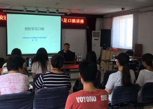 8月3日上午,临七团支部将习总书记的“不忘初心 继续前进”精神落实到实处,组织支部青年团员来到玉林里社区,为社区居民进行手足口病的相关知识讲座。