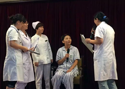 这次医患沟通情景剧演出的目的,旨在通过这样一种互动方式让医务人员学习提高沟通水平,也是继2016年2月北京市医院管理局人文医学巡讲团的老师们来到首都医科大学附属北京佑安医院进行人文医学巡讲之后,我院推行的又一有针对性的培训,以便提高医务人员沟通的技能,更好的为患者提供医疗服务,增强医患理解沟通,提高患者满意度。