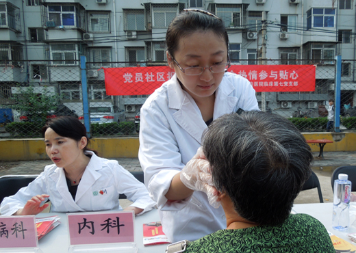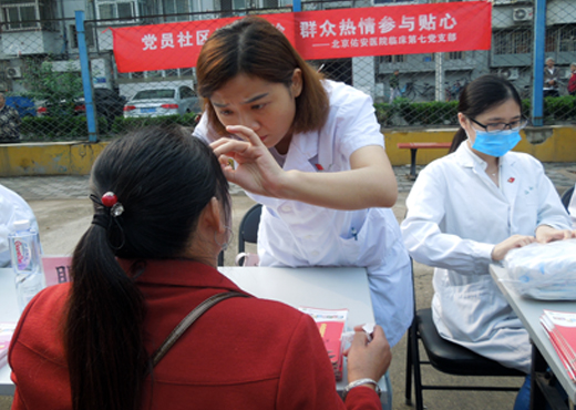 9月24日,一个晴朗的周末,佑安医院临七支部的党员、团员到海淀区西北旺镇亮甲店村开展义诊咨询活动。