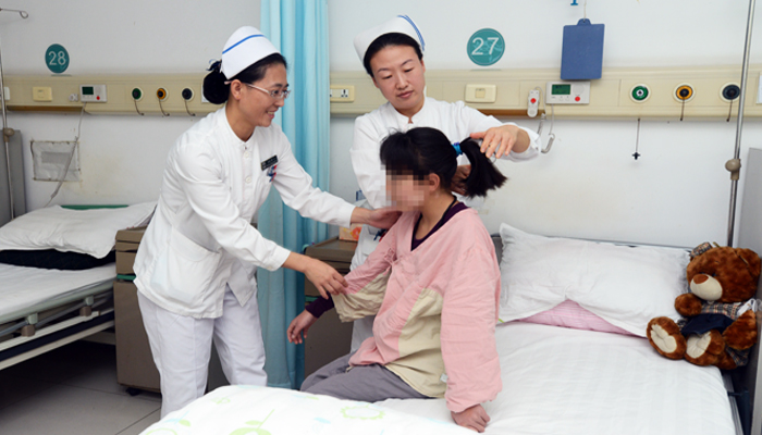阿牛来自高原的牧区,卫生条件较差,责任护士为她做各种卫生处置,带着她淋浴,洗澡水打湿了护士姐姐的白衣,在护士姐姐的帮助下,阿牛焕然一新。因为家境贫困,阿牛的身体严重营养不良,无法承受手术,也将严重影响术后的恢复。为此护士们,除了仔细叮嘱营养膳食科的配餐员,每日三餐一定要协助阿牛选择适合她口味的食物,还为她带来了营养品。经过精心护理,阿牛的身体状况明显改善。