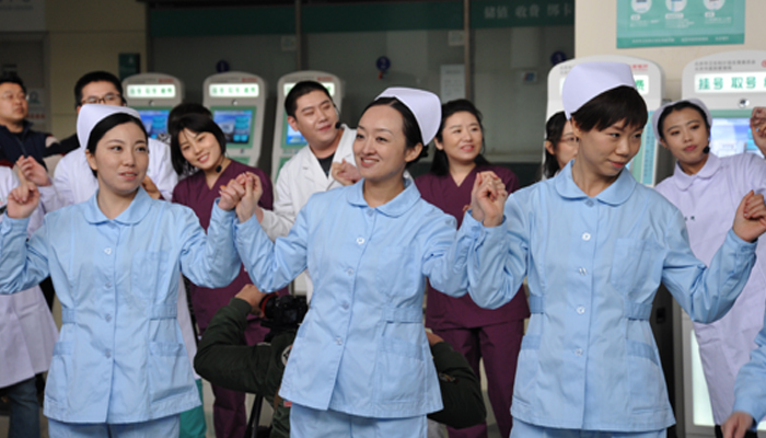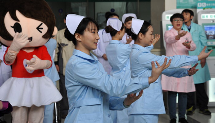 “致敬生命,为爱行动”公益快闪活动经过近三个月的紧张筹备,1月10日下午在北京佑安医院的门诊大厅圆满呈现。一位肝脏移植患者的女儿首先出场大提琴演奏《让世界充满爱》,前奏完毕,医护人员和患者及家属从门诊大厅的各个角落伴随歌声走到一起,手语舞蹈队也参与到快闪中,医患携手现场演唱《让世界充满爱》,整个快闪持续7分钟。