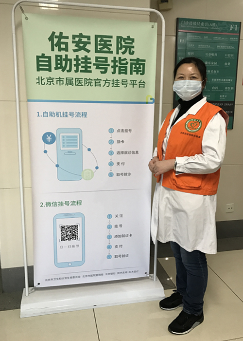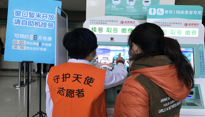 每天清早,“守护天使”志愿者们在患者就诊前便整装上岗,在收费室与自助挂号机之间来回奔波,往往一上午也喝不上一口水,他们一方面耐心解答患者的各类问题,另一方面主动协助患者完成门诊挂号,尤其是一些老年及体弱患者,有时要解释、操作几遍,才能完成一次挂号。虽然天气寒冷,但志愿者们的热情不减,一张张温暖的笑脸,一句句耐心的解释,为患者就医提供了极大的方便,大大缓解了现场排长队挂号的现象。