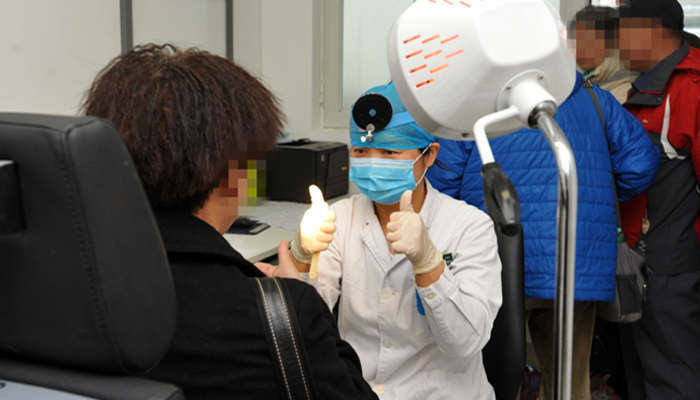 八点刚过,每间诊室已簇拥着10余位患者,“嗓子痛”、“鼻子不通气”“打呼噜”,各种不舒服,医生耐心检查,简单病症自己和患者交流,复杂一些的疾病在手语志愿者的协助下沟通,医务人员都很耐心,使每一位聋人获得个性化的治疗、建议及健康宣教。