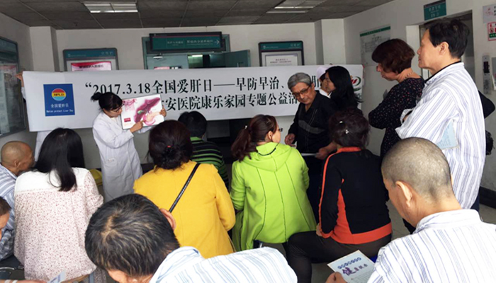 慢病管理中心党小组在支部书记李雪梅主任带领下,依托北京佑安医院康乐家园平台特邀知名肝病专家,消化中心丁惠国主任医师,面向所有患者,开展“肝硬化、肝细胞癌的预防和筛查”专题讲座,会后两位主任为肝病患者答疑解惑。同时,慢病管理中心利用微信公众平台和官方微博宣传肝病防治知识,李雪梅主任做客彤爱健康TV120,线上进行健康宣教。希望大家积极行动起来,投入到这项公益活动当中,使更多的人提高对肝病的认知。