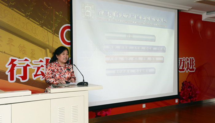 任珍主任以《我们共同成长》为题目,为团员青年讲解了自己来到佑安医院从事医疗护理,护理管理36年来的成长过程,用一个个鲜活的故事告诉大家如何用心思考,换位思考,给予和帮助患者和同事朋友,任主任表达了对全院青年的节日慰问,同时要求广大青年团员立足本职岗位,为医院的发展建设贡献力量。