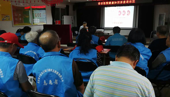 泌尿外科进社区,向社区居民们进行健康知识宣讲,其目的是想把这种健康的理念广泛的进行传播,让广大人民群众提高自身的健康保健意识,杜绝不良的生活方式,做到早发现、早诊断、早治疗。