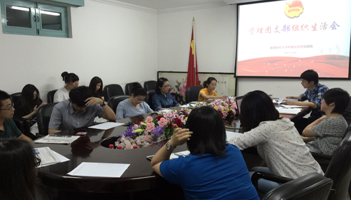 6月21日中午,北京佑安医院管理团支部利用中午休息时间在B楼八层会议室开展 “一学一做”学习教育专题会,共计16名团员参加,会议由管理团支部书记郭娜娜主持。