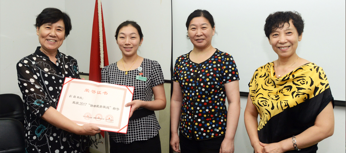 7月10日下午,北京市女医师协会王香平会长亲自来到北京佑安医院为刘颖同志颁发一份包含爱的证书与奖杯,刘颖家庭获评2017年度“首都最美家庭”称号。这一奖项是中共北京市委宣传部、首都精神文明建设委员会、北京市妇女联合会共同举办2017年“首都最美家庭”评选活动。由北京市女医师协会推荐,北京佑安医院刘颖家庭获此殊荣。佑安医院党委书记李玉梅、工会主席刘香玉、党办及支部、科室的负责人一同参加了颁奖仪式。王香平会长介绍此次评选,北京市共有442组家庭入选,刘颖家庭排于女性社会组织的第一名。祝贺的同时,还赠送书法作品一幅,题写的是刘颖家庭的家风家训:勤俭治家,虚心治学,仁爱治德!