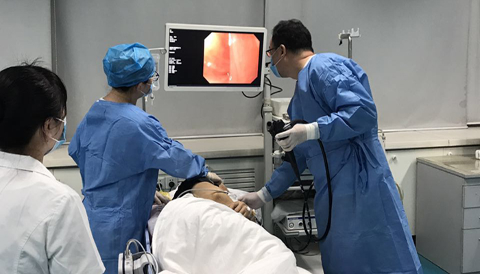 2017年7月6日傍晚,在佑安医院急诊科的抢救室里,有一位因肝硬化、消化道出血入院的76岁患者。在短短两个小时内,老人共呕血超过2000毫升,血液性状也从最开始的暗红色血块逐渐转变成了鲜红色血,虽经急诊科积极的止血扩容治疗,出血征象却没有明显控制。老人脸色逐渐变得苍白,四肢冰冷,血压持续下降,心率明显增快。急诊科医师靳华见此情形,立即拨通了住院总医师魏琳琳的电话,请上级领导协调,为患者进行急诊胃镜治疗。住院总医师魏琳琳接到电话后赶到急诊抢救室,快速评估患者病情后,与家属做好了病情沟通并做好了相关文件的签署。