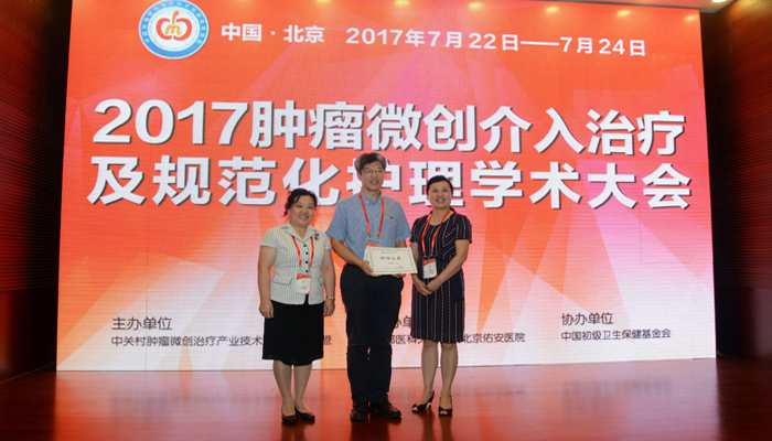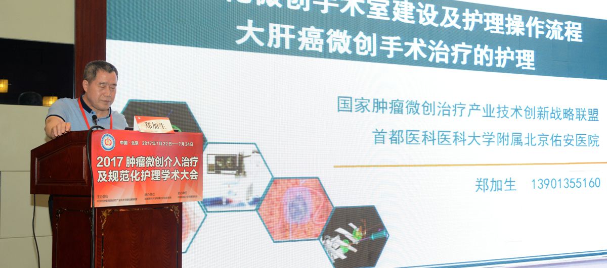 7月22日至24日,由北京佑安医院主办的2017(第四届)肿瘤微创介入治疗及规范化护理大会在京召开。中华护理学会肿瘤专业委员会徐波主委、中国抗癌协会肿瘤介入护理专委会闻利红主委、广东省抗癌协会肿瘤介入护理专委会陈英梅主委、北京佑安医院孙桂珍副院长、护理部任珍主任、介入中心主任张永宏博士、介入中心学科带头人郑加生教授、介入中心总护士长大会执行主席邢秀亚主任参加此次盛会开幕式并讲话。作为大会主席的郑加生教授对此次大会的召开表示了热烈的祝贺,并对肿瘤微创介入护理方面取得的成绩给予了很大的肯定,对未来介入护理的发展又提出了更高的希望和目标。