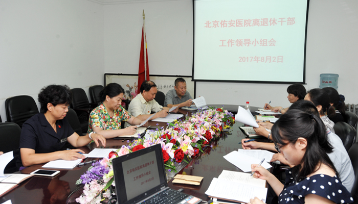 2017年8月2日上午,北京佑安医院召开离退休干部工作领导小组办公会,党委书记李玉梅、副书记向海平及老干部工作领导小组成员参加了会议。