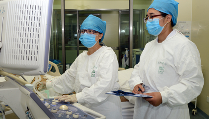 “一多”是科室多,从8点-11:30分一直穿梭在不同的科室之间,从肝病内分泌科、肝病免疫科到普通外科中心、感染综合科等共9个临床科室;“二多”是病种多,涉及肝硬化、肝衰竭、消化道出血和肝移植术后等病种;“三多”是系统多,检查部位从肝胆脾双肾腹水、心脏到血管多系统。完成这一切要依赖于业务精、专业强的超声医师做出准确的判断,而张海英老师恰恰具备了这些高超技术,她给患者做出了准确的超声诊断,为临床科室治疗患者起到了保驾护航的作用。