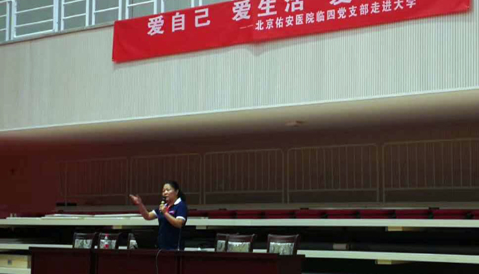 此次活动是北京佑安医院临四党、工、团员携手走进大学,希望通过我们的健康知识宣讲使更多的人学会如何爱自己!爱生活!爱未来!