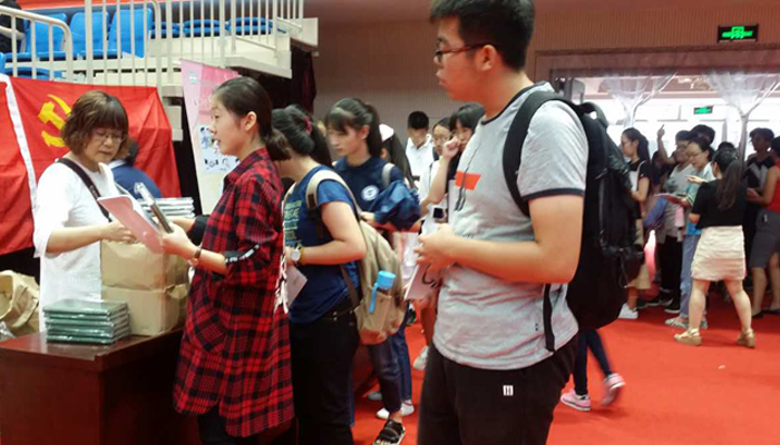 9月14日早晨七点,对外经济贸易大学红天体育馆内,北京佑安医院临床第四支部的党、工、团员们已经准备好各种宣传册,迎接新生的到来。