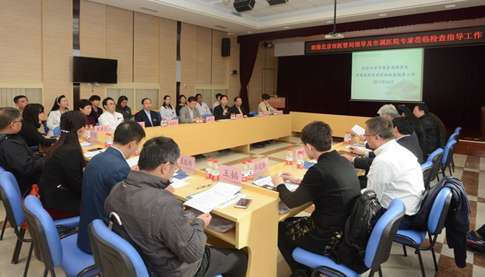 10月11日,北京市医管局党委书记方来英、市医管局副局长边宝生带队来到北京佑安医院对保障十九大期间安全管理工作进行检查。市医管局基础运行处龚文涛处长、党群处张海鸥处长和市属医院专家组成专家组一同检查。