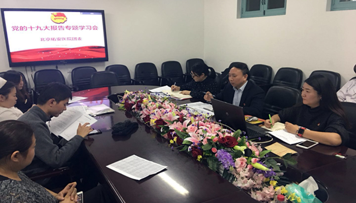 11月13日下午,北京佑安医院团委组织开展党的十九大报告专题学习交流会,党委副书记向海平出席会议,全院12个团支部的支委干部参加了学习。在学习活动中,团委书记张鸣旭传达了党的十九大报告精神及要点,对各团支部学习宣传贯彻十九大精神进行了工作安排和部署,部分团员就十九大报告内容交流学习体会。