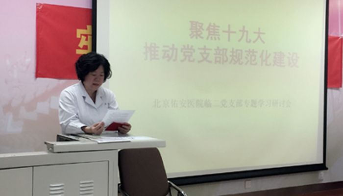 12月4日,临二党支部联合临二团支部、临二分工会共同举办了主题为“牢记使命 做杰出佑安人”的主题党日活动。会议由临二党支部书记李雪梅主持,以访谈形式举行。向海平副书记、全体党员、中层干部、入党积极分子、团员、所辖科室的党外代表人士以及广大科室职工参加了此次会议。