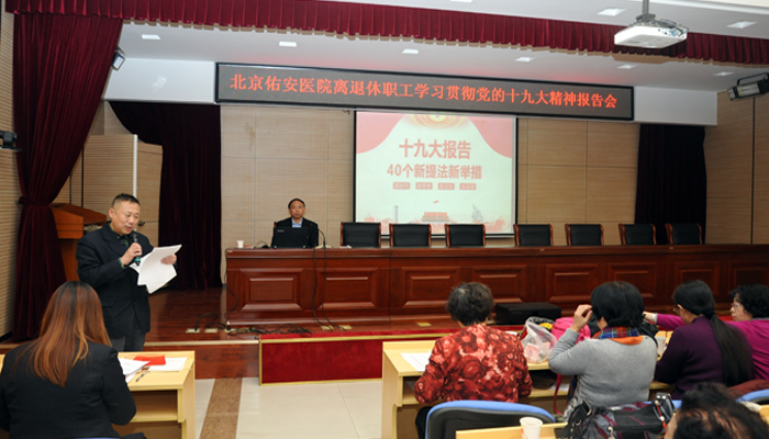 为深入学习贯彻党的“十九大”报告精神,全面领会党的“十九大”精神的实质和内涵,12月11日下午,北京佑安医院举办了“离退休职工学习党的十九大精神报告会”,离退休职工共计60余人参加学习。