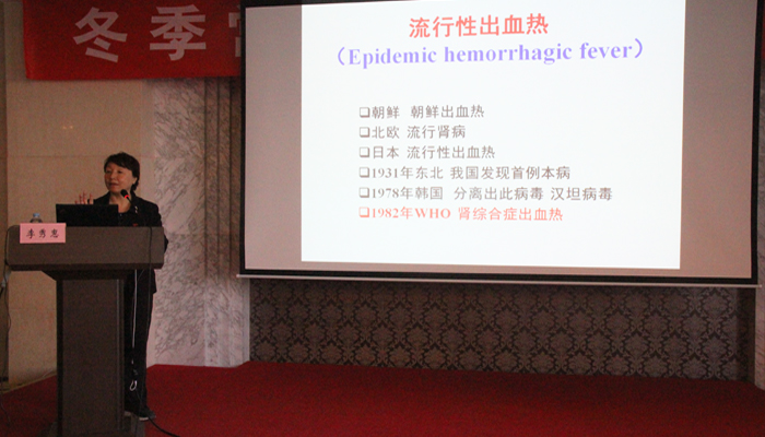 北京市疾病控制中心王全意主任对我国和北京地区2017年冬季常见呼吸系统疾病流行进行了分析;北京佑安医院黄晶主任详细讲解了冬季常见传染病院感如何防控;东方医院黄象安主任、北京佑安医院李秀惠主任、梁连春主任对流感、禽流感、SARS、流脑、流行性出血热的诊断与治疗进行了培训;北京地坛医院陈志海主任和中日友好医院徐潜主任讲解了临床上经常出现的发热伴皮疹及发热、不明原因肺炎的诊断与治疗;最后北京中医药大学谷小红书记培训了冬瘟春瘟的中医诊断与治疗。