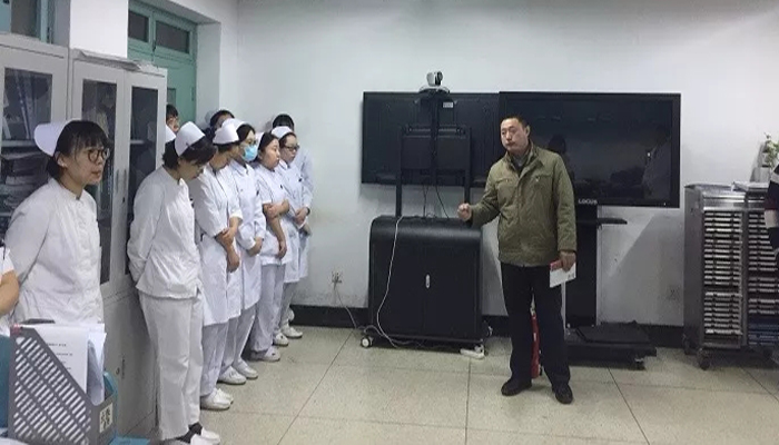 培训课上,刘副处长结合近期全国典型的火灾事故案例,让大家深刻意识到火灾的严重危害性和做好日常消防安全工作的重要性,并详细讲解了医院引发火灾的常见原因、病房里容易被忽视的火灾隐患以及一旦发生火灾后医务人员如何报警、如何扑救初期火灾以及如何组织病人疏散。刘副处长还为大家演示了灭火器的使用,简单的四个动作:一提、二拉、三握、四压,让大家对灭火器不再陌生和恐惧。同时反复向大家强调一定要强化安全意识,及时消除安全隐患,发现危险立即拨打院内电话,保证人身安全。