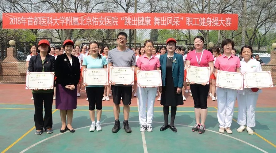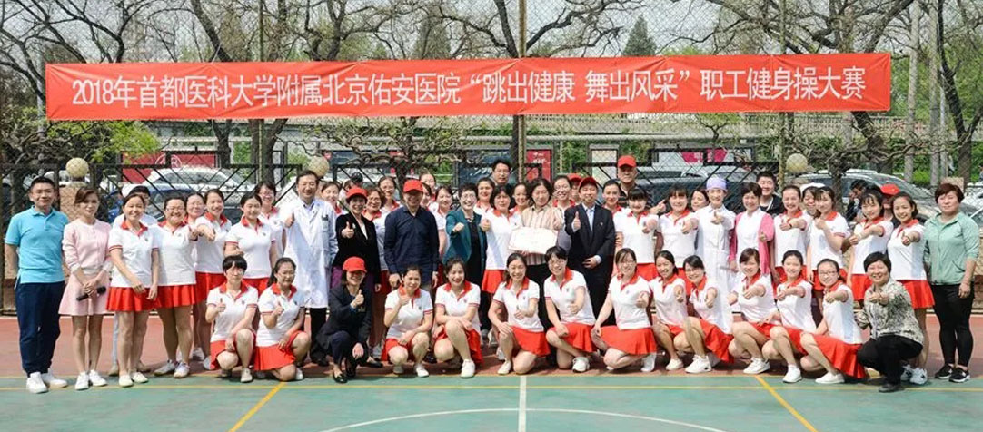 为全面贯彻落实党的十九大精神,积极推进健康北京建设,丰富职工文化生活,提高广大医务人员健康意识,4月18日在和熙的阳光下,首都医科大学附属北京佑安医院举办了“跳出健康 舞出风采”职工健身操大赛,此次共有13个代表队,270余人参加。