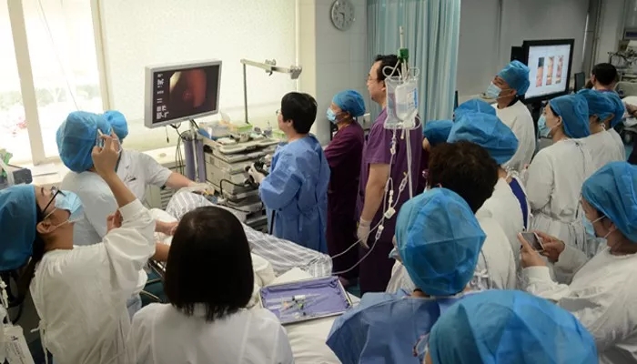 8月31日上午,在北京佑安医院肝病消化中心内镜室进行消化内镜手把手带教,涉及食管胃静脉曲张镜下治疗、十二指肠镜下逆行胰胆管造影+Spyglass、胃早癌内镜下黏膜剥离术等消化内镜诊疗方面的热点领域,带教专家包括解放军总医院消化科刘迎娣教授、中国医学科院肿瘤医院消化科姚方教授以及我院丁惠国教授、张世斌副教授、李磊副教授、张月宁副教授、李鹏副教授等。学员则来自江苏、辽宁、内蒙、河北、重庆以及北京地区共12名。全部操作从上午9点开始一直持续到下午2点,每位学员均能上手操作,会后都反映对提升自己的诊疗技术和理念有很大帮助。当日下午,还举行了以消化内镜诊疗为主题的研讨,涉及到内镜诊疗并发症防治、消化道支架临床应用、镇静麻醉在消化内镜中的价值、软式内镜清洗消毒规范、内镜治疗中抗菌药物的应用、人工智能大数据在消化领域的发展,并提供了2例相关病例进行讨论,进一步拓宽了大家的视野。